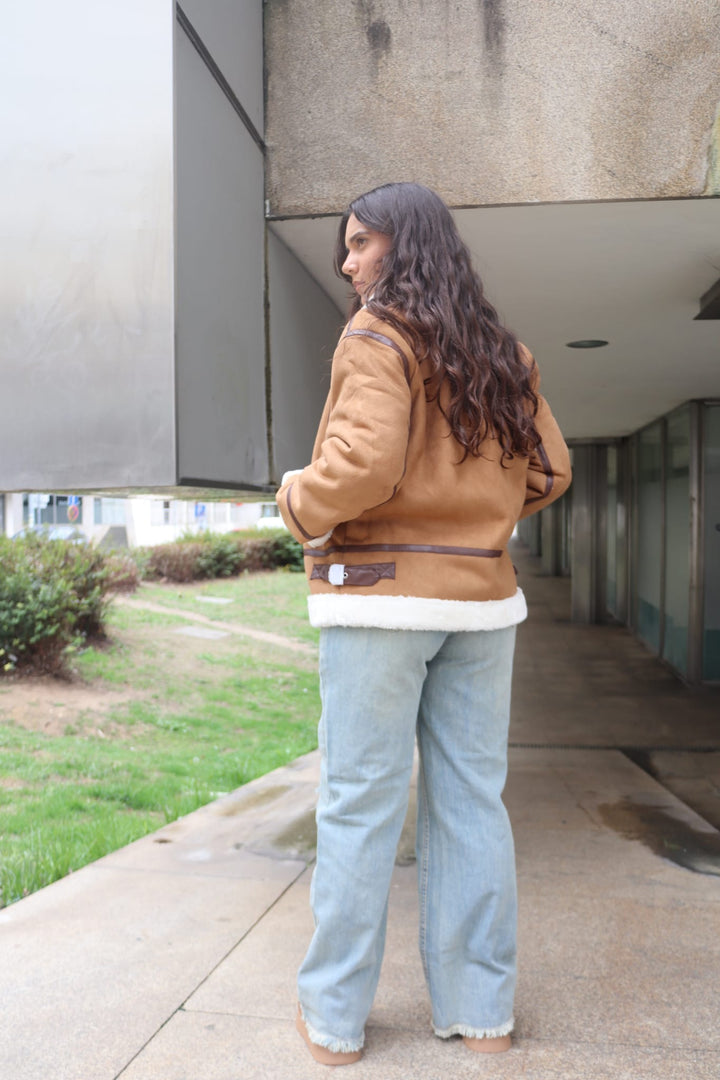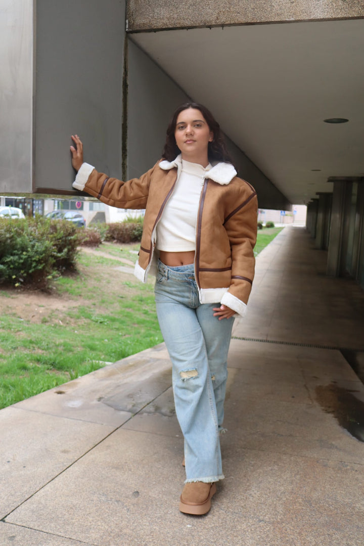 Elegante e aconchegante, este casaco castanho de pelo é a escolha ideal para os dias frios. Com um toque suave e um corte moderno, combina conforto com um estilo sofisticado.